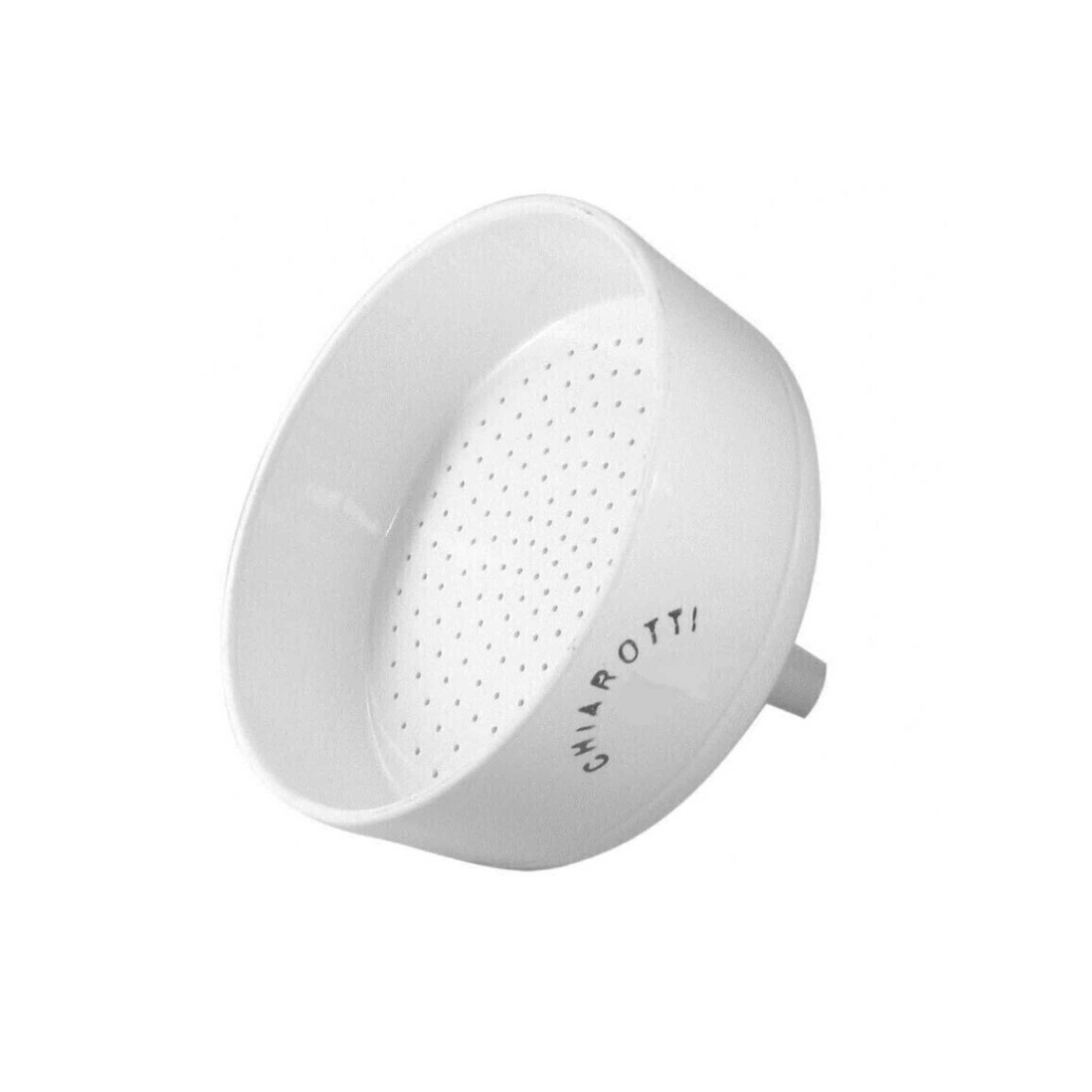 A placa perfurada obedece a normas internacionais. As dimensões ficam sujeitas a variações de + ou – 2%. Vale salientar que a medida do diâmetro deverá ser tomada no fundo, pois sua boca é ligeiramente cônica, aumentando na parte superior. Temperatura máxima para uso = 120 a 130°C. A partir de determinado diâmetro, é fabricado bipartido com técnica exclusiva da Chiarotti Porcelana – única empresa da América Latina que detém o know-how na fabricação deste funil.